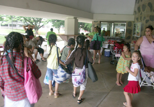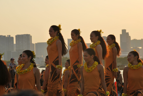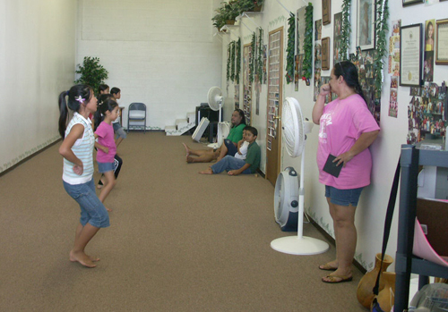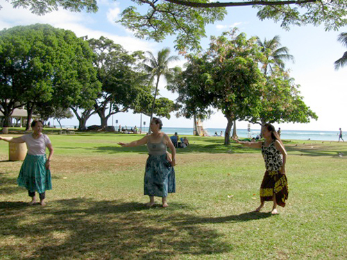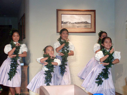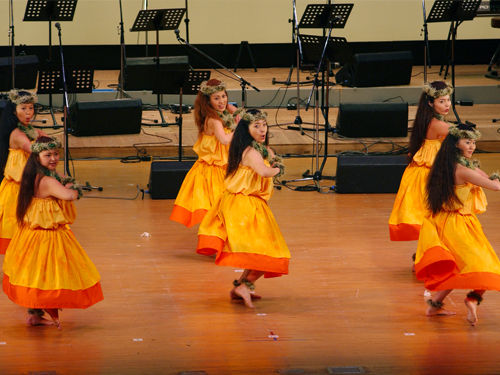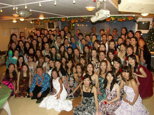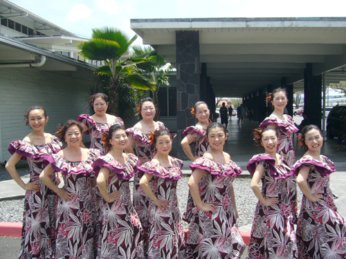 ジョニーラムホー先生のハラウ、カニレフアのスタジオにて研修。夜にはマウナケアツアーがありました。お天気が悪く残念ながら満天の★は見れませんでしたが、マウナケアは本当に寒いんだ〜というとを体験し、どこまでも続く地平線に沈む幻想的な夕陽を見て感激したり、またSILVERSWARDを見つけた人もいたり'Ohi'a Lehuaの群生林で、小雨と寒さで震えながら Lehuaの写真を撮り、その若草色の蕾がレイになることを先生に教えてもらい、今度来た時はみんなでレイメーキングをしましょうと約束したりで、フラシスターたちは楽しいときを過ごせました。